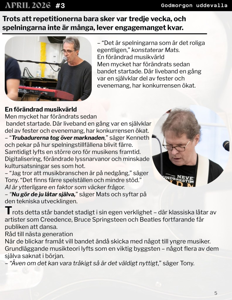 I en tid där musikbranschen förändras snabbt, där digitalisering och AI utmanar traditionella sätt att skapa och uppleva musik, finns det fortfarande något tidlöst i att samlas i ett band. För ett gäng musiker har just detta varit kärnan i över 30 år – inte för berömmelse eller pengar, utan för glädjen.